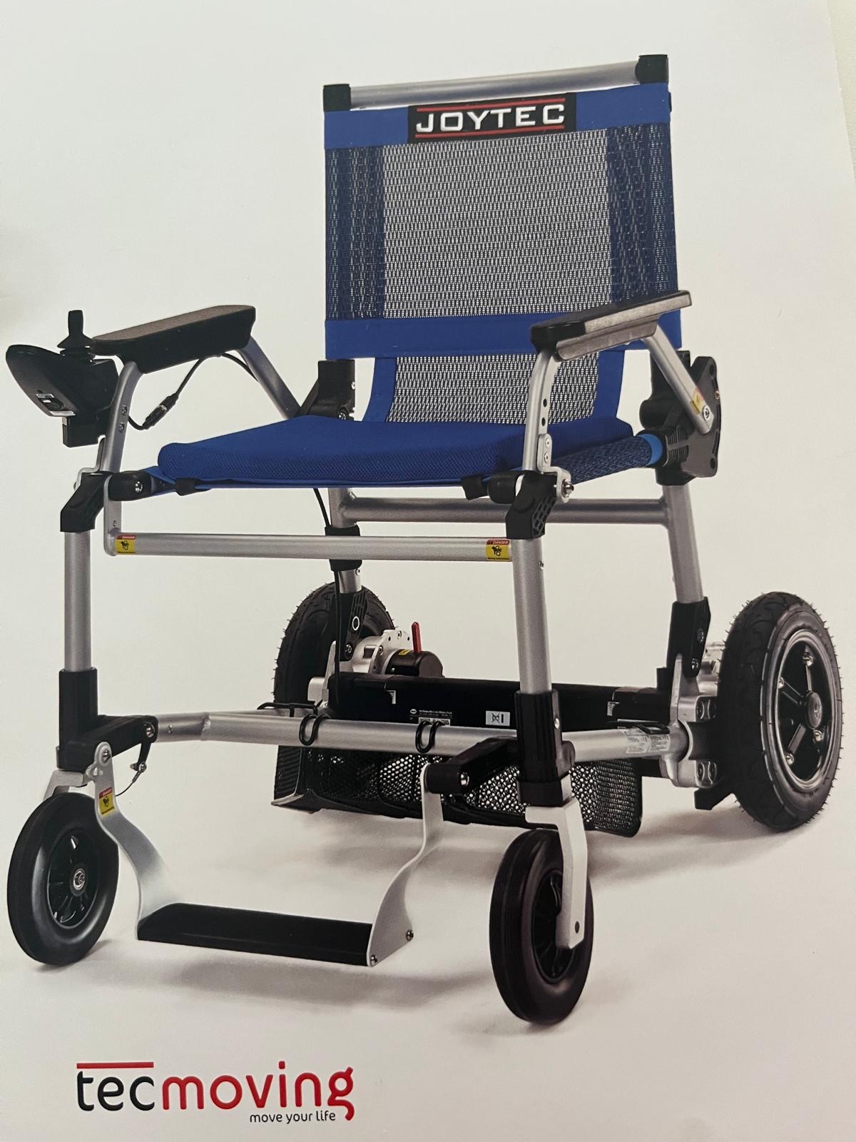 Silla eléctrica Joytec de segunda mano con Joystick plegable Ligera de Aluminio 21 Kgr,color azul y fácil de plegar y de transportar, tejido transpirable y…